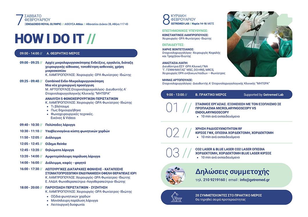 Masterclass Φωνοχειρουργικής 7-8 Φεβρουαρίου